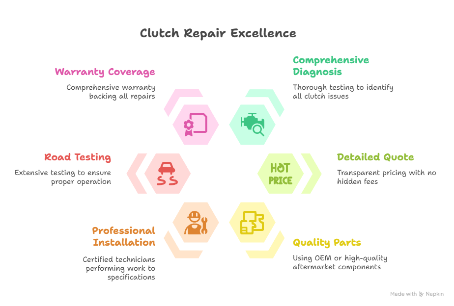 All clutch repairs come with comprehensive warranty coverage for your peace of mind.